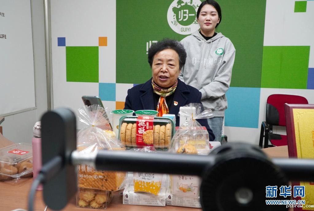 2023年2月20日,在山东省曹县五里墩村,王银香(前)在电商直播间介绍村里的特色食品。新华社记者 徐速绘 摄